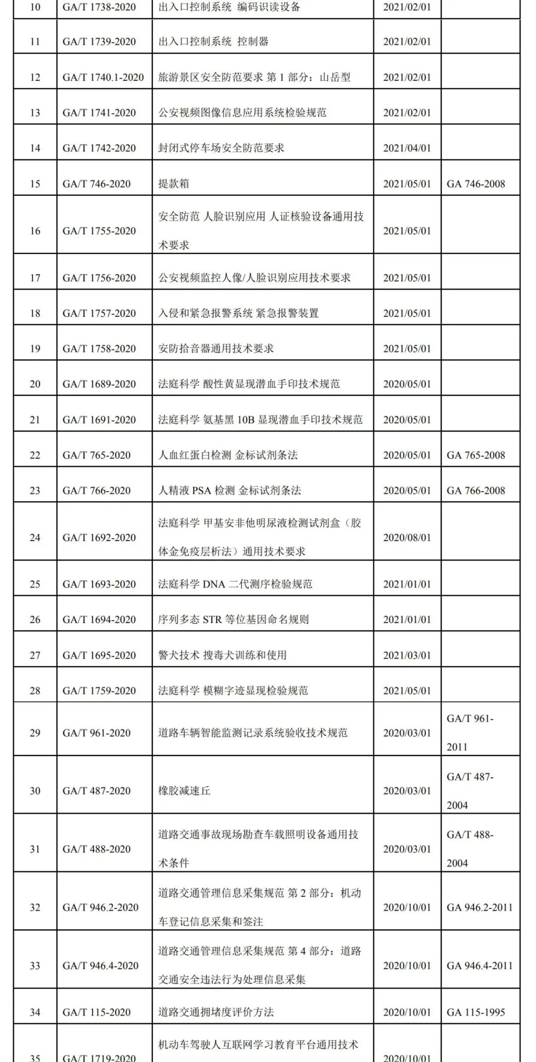 此次公布的2020年公共安全行业标准共包括11项强制性标准、105项推荐性标准与1项指导性技术文件三类。